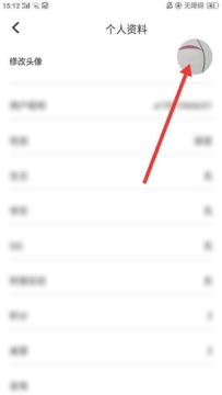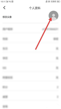 2、然后进入到个人资料界面,我们再点击箭头所指的头像即可。