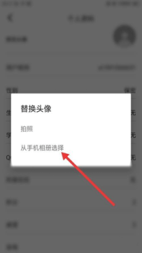 3、接着弹出替换头像对话框,这里以从手机相册选择为例,点击该选项。
