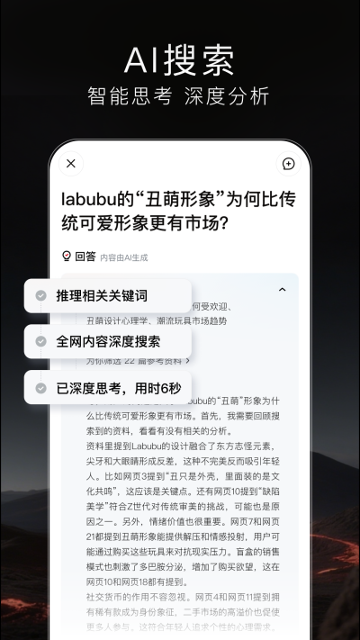 【AI双模智能搜索】支持自动思考与深度思考的双模式智能引擎,通过全网信息精准分析,结合你的偏好提供个性化答案,搜索结果更高效、更精准。