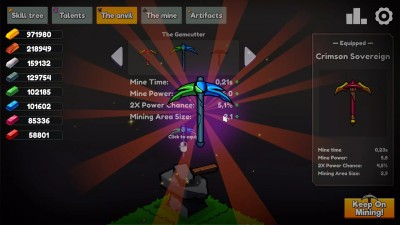 使用不同的材料制作新的镐。每把新的镐都有更好的属性,帮助您更快地开采并更有力地开采!