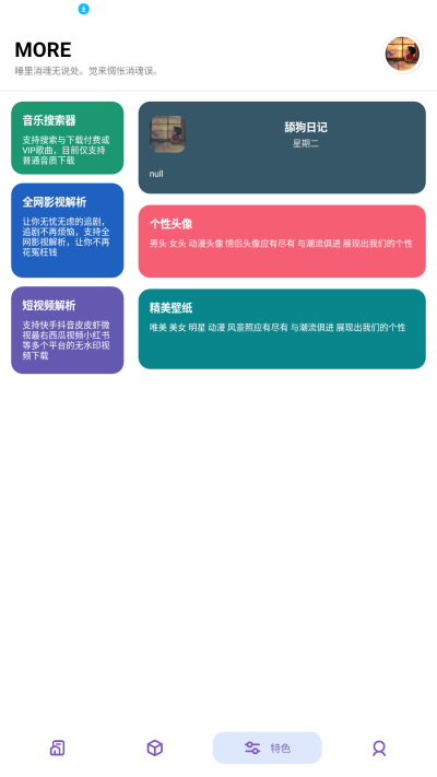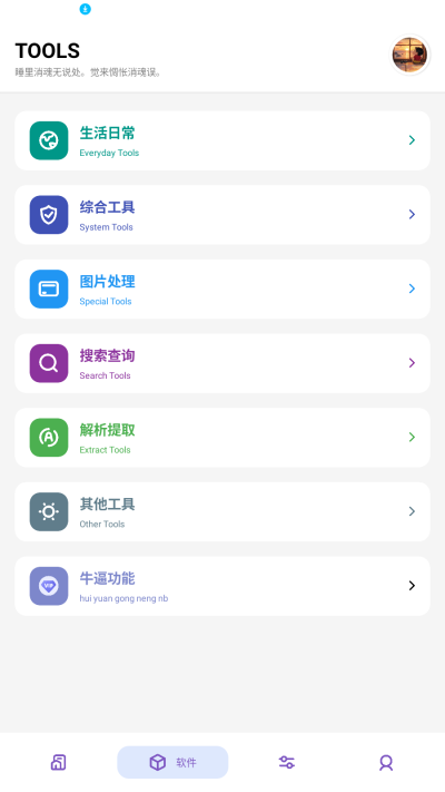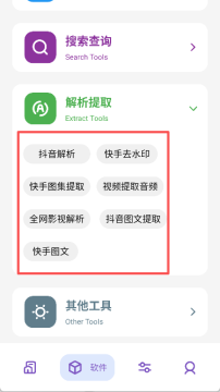 2、包含日常生活、综合工具、搜索查询、解析提取等多种功能。