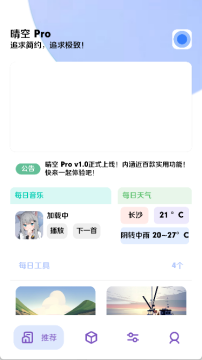 晴空pro官方版是一款多功能的手机工具箱软件,软件内置了多种领域丰富的工具软件,用户无需下载多个应用,即可满足多样化的需求,免费获取不同的资源支持搜索和下载付费或VIP歌曲,提供无水印视频下载服务,软件操作非常简单,用户只需打开工具即可直接使用!