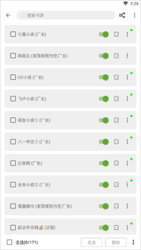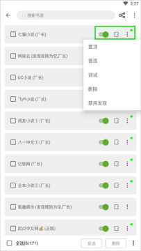 3、可以对书源进行开关、编辑、置顶、删除等操作