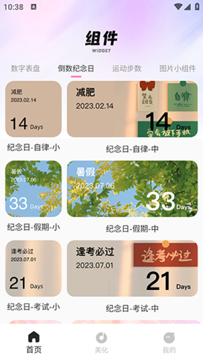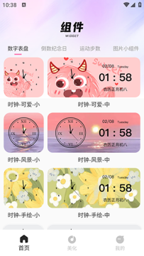 提供丰富主题包,每个主题均配套专属桌面小组件(时钟、天气、音乐控制、倒计时等)。