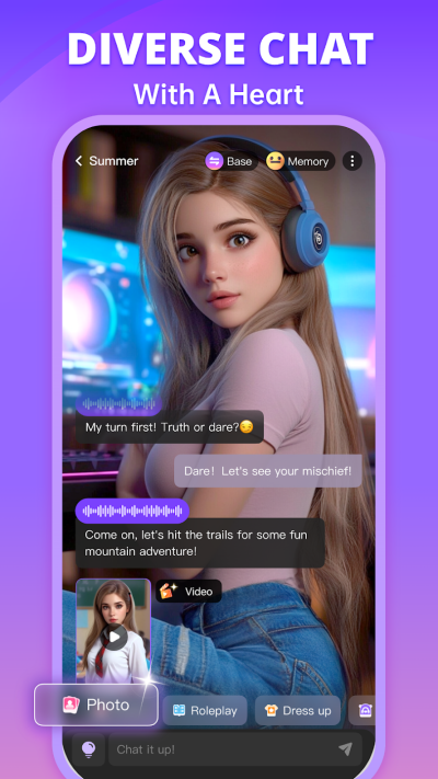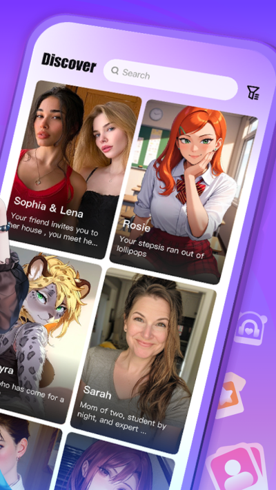 独特的沉浸式体验,您可以随时与任何角色进行角色扮演,开启一段独特的旅程。动漫或逼真的角色等您来探索。