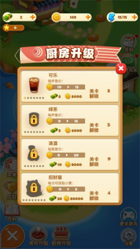 7、点击厨房升级可以解锁更多的饮料和设施来获得更多的收益。