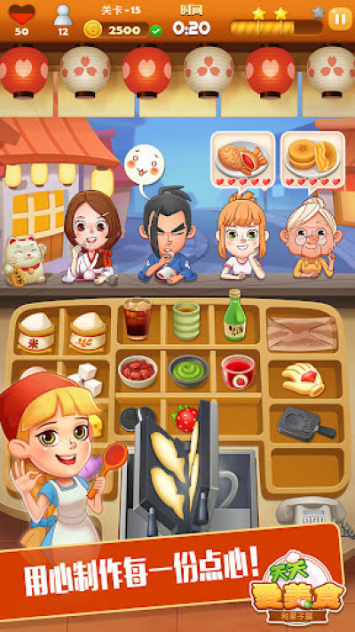 这是一场手速与策略的终极考验!在关卡中,客人会同时点单:一笼中式包子、一盘日式水信玄饼、一份西式泡芙。