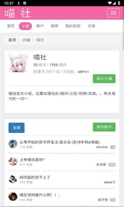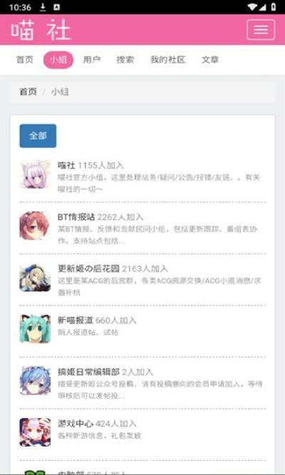 2、接着就可以进入到页面中看到许多二次元小组了。