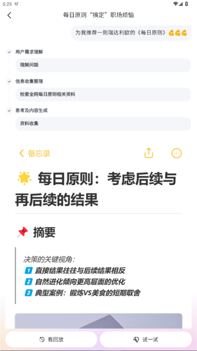 信息资源智能串联:强大功能可整合各类信息资源,例如深度研究时自动搜索数据并结合 AI 分析生成报告,制定旅行计划时联动交通、住宿数据,确保任务结果全面准确。