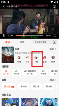 1、选择要下载的影片,在播放页面点击下载功能。