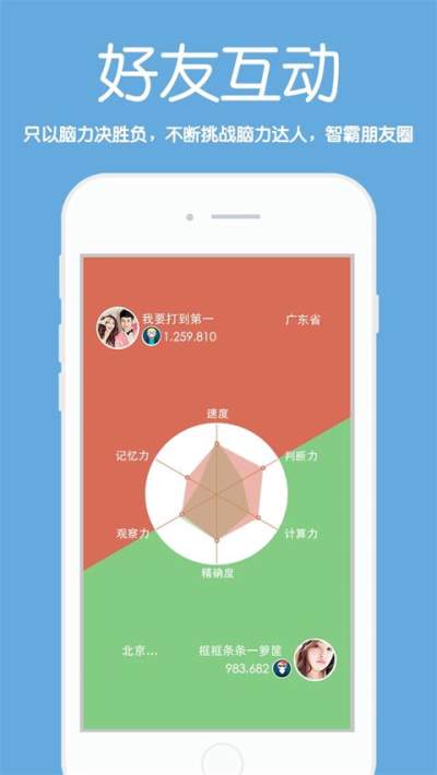 《脑力战争》是一款脑力竞技游戏。集合各种科学的益智小游戏,从速度、判断力、计算力、精确度、观察力、记忆力六个方面训练您的大脑,玩法简单有趣。还能与世界各地的玩家进行脑力竞技大赛,随时随地脑洞大开挑战最强大脑,成为脑力达人,开启全民脑力战争,争夺最强大脑。