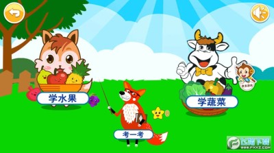 1、从学蔬菜到学水果,再通过考考乐,分步学习;