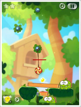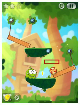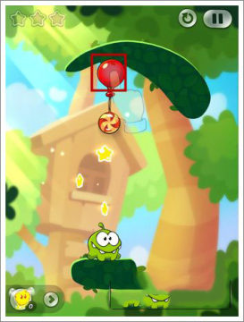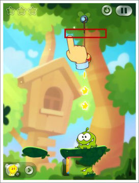 随着游戏进行,难度换不提升,第四关我们先把上面的绳子切掉,来获得前两个星星。