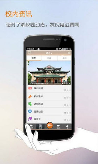 2.查看本地校园信息。校园新闻,社团活动,宣讲会,讲座,课程信息一应俱全。