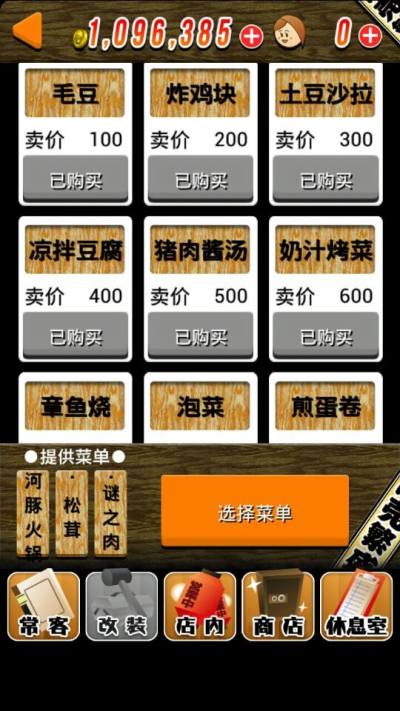 积累了金钱,可以开发新的菜单,