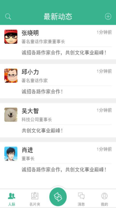 2.发布个人动态,交换用户名片,拓展商业人脉;