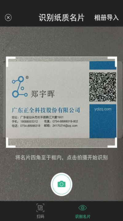 1.名片二维码识别、纸质名片云识别;