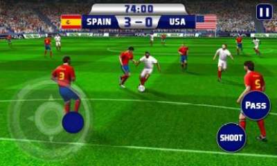 作简单,屏幕左下角有摇杆控制球员运动。右下角有踢球的功能选项。相信你能击败你所有的对手!