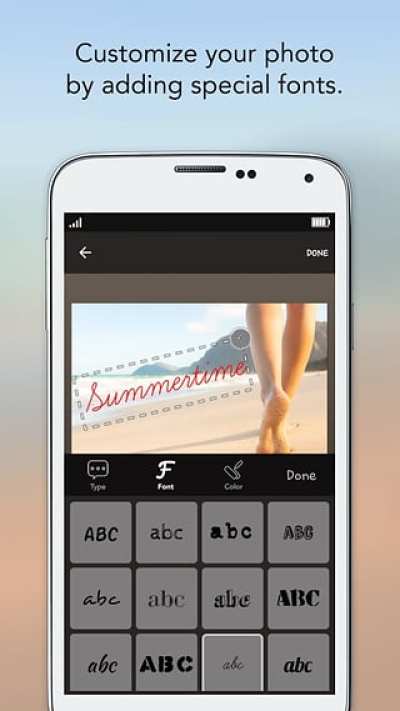 - 自定文本:在图片上通过打字来表达你的感觉!你可以选择非常多的字体和颜色,还可以调整大小和位置!