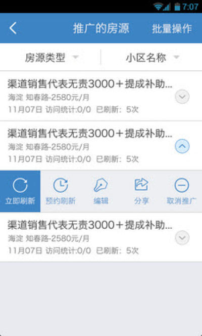 随时随地刷新管理房源,支持房源的推广管理,刷新操作等