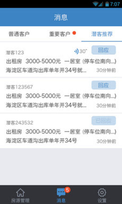 3.回复消息不仅支持文字、图片、语音,还可发送房源