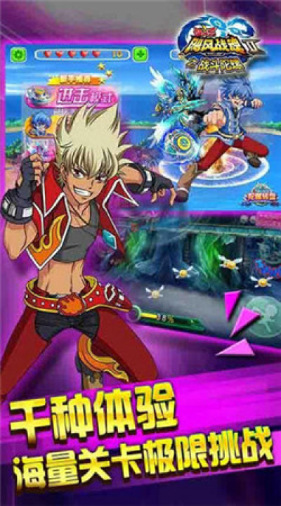 飓风战魂之战斗王是一款跑酷类游戏,游戏里王者归来,陀螺激斗!激烈的陀螺的对决,炫酷的必杀较量,海量的关卡,丰富的道具,完美融合战斗与跑酷,经验玩法结合创新战斗,让玩家体验不一样的2D横版跑酷游戏!