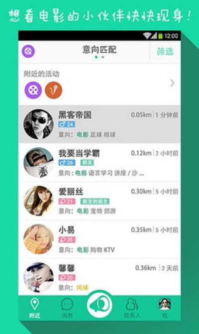 想做什么就选什么,看看周围哪些朋友与自己想法相同,说不定已经有小伙伴在召集这类型的活动喽……
