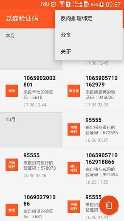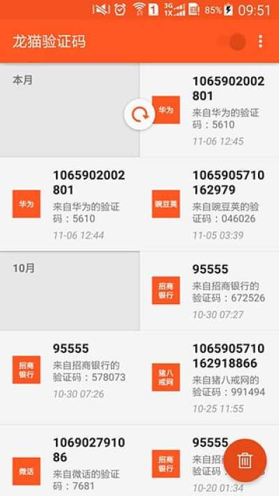 龙猫验证码是一个便捷的验证码助手,它可以在手机接收到验证码短信的时候,自动浮现验证码,并自动复制验证码到用户的剪切板。当用户接收到短信验证码,只要长按验证码的输入框,粘贴验证码即可。除此之外,还可以让用户批量删除无用验证码短信,帮助用户反向推理出绑定了哪些业务。在闲时它不会偷跑流量、不会占用任何内存。