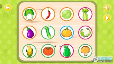 3、儿童根据图片显示的内容,在多个蔬菜中找出相同的物品闯关;