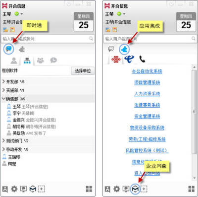由系统管理员统一建立单位、部门、人员,因此我们平时的聊天对象都是公司同事,或与工作有关人员。