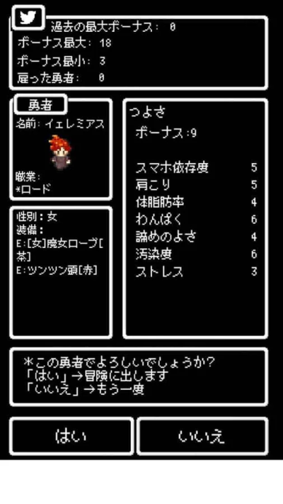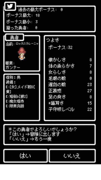 - 如果对生成后的勇者不满意,点击(不)即可重新生成