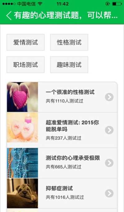 5、支持心理测试、情感测试、趣味测试。