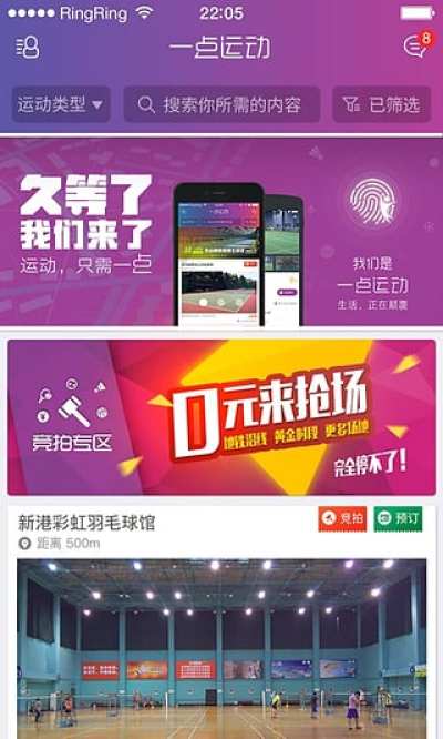 随着人们生活水平的提高以及对于健康生活的重视,越来越多的普通人开始加入到健身运动之中。但有限的硬件设施资源让很多场馆都是爆满,如果大家订不到运动场馆的话,不妨来试试一点运动这款APP。