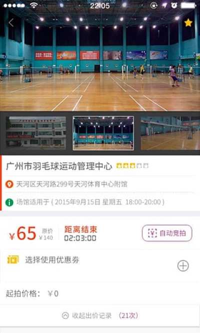 球馆爆满,订不到场地?订场只需一点,不用排队,不用打电话,黄金时段场馆免费在线预订,首创0元竞拍功能,提供上百家免费场馆和特价场馆,走哪儿都不怕没场地,每日优惠福利不断!运动,只需一点,赶快来点一点!