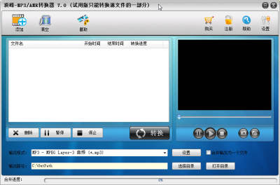 支持将MP3格式的视频转换为amr格式,也可将所有流行格式的视频转换为MP3、amr格式