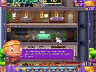 宠物店:皇冠上的宝石是一个消除类游戏,游戏中你要挑战超过200个不同关卡,这样就能够不断赚取金币来给你的宠物们修建最早的旅店,游戏中你的主要任务就是将旅店快速升至五星级别,满足你的宠物们的各种需求。