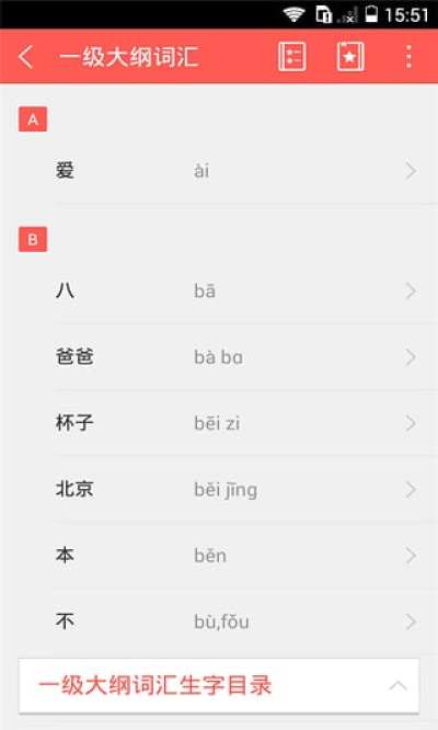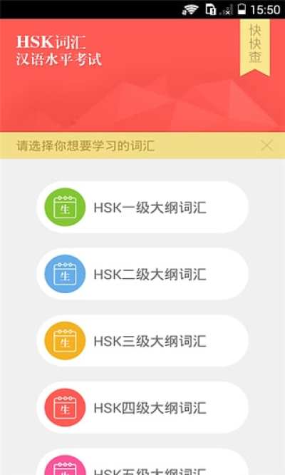 4. 提供HSK不同等级考试的的词汇大纲,方便自主学习。