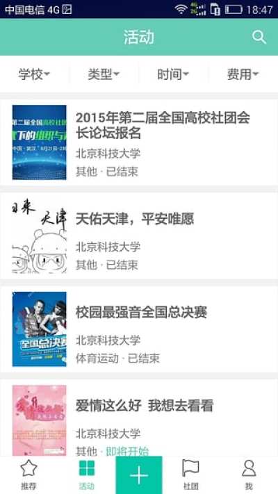 1、汇聚本校以及周边大学的所有活动和社团信息