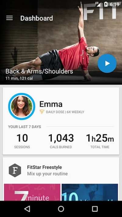 无论您是在家,还是在出行途中,或当您无法去健身房,又或不想花大钱聘请私人教练时,仍绝对不用错过任何机会,享受度身定制的锻炼。FitStar Personal Trainer从头开始专为 Android 手机打造,督促您一路向前,帮助您实现所有健身目标。