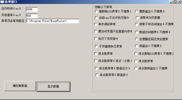 运行时间:对每一个样本处理的生命周期。 不同性能的计算机,和不同的测试目标(浏览器,播放器,还是图片查看器) 对这个数值要求是不同的。数值过大会降低实验效率,浪费能源。数值多小则会让测试无法正常进行。