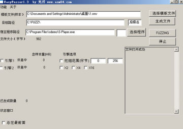 EasyFuzzer是一款便捷实用的模糊测试工具,软件目前只支持文件格式的模糊测试。软件特点是:容易,精简,高效。软件非常容易上手,不需要什么配置。