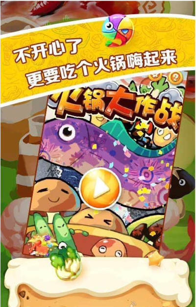 《火锅大作战》是一款消除类游戏,萌萌哒的肉类和蔬菜,需要你的智慧和双手去让它们成为美味的盘中餐哦,开动双手和大脑吧,让大虾、蔬菜、肉肉们练成一条线,下到火锅里吧。