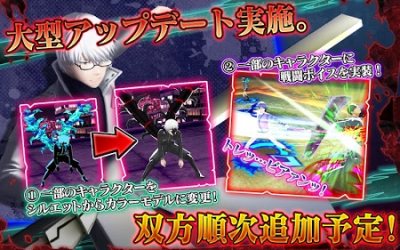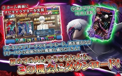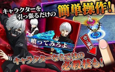 该作是超人气动画《东京食尸鬼》手游化的作品,动画《东京食尸鬼》第二季也正在热播中~游戏采用3D立体感,通过3D战斗的表现形式来再现作品中那危机四伏的处境和背景,金木研与亚门钢太朗将会是不同阵营的主角人物。