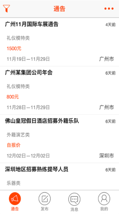 1、快速发布演艺通告,覆盖全国多个城市