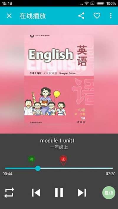 功能1:小学语文英语各版本教材课文有声播放,并可按需进行指定位置循环播放,更有助于英语学习。