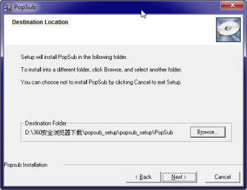 下载压缩包后,解压文件,双击PopSub.exe进入安装界面