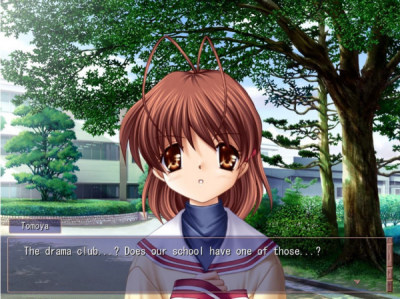 故事发生在某个小镇,主角冈崎朋也因为家庭的因素成为不良少年,一直与春原阳平为伍,在光坂高校过着潦倒的生活,但冀望终有一天能够离开所在的小镇。某年4月14日,他在学校坡道前发现了一个止步不前的女孩,在朋也认识了这个名为“古河渚”的女孩后,他的生活开始有了重大的变化。