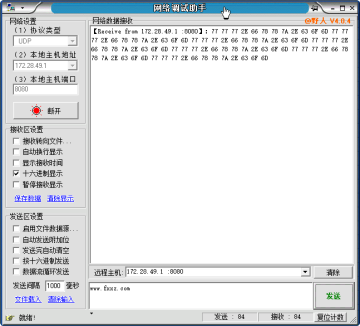 可以以类似与串口助手的方式工作,连接远程机器的端口或自己开端口让其他机器连接,然后有两个窗口,一个显示接收的数据,一个显示发送的数据,可以以ASCII码和十六进制显示