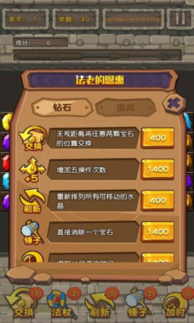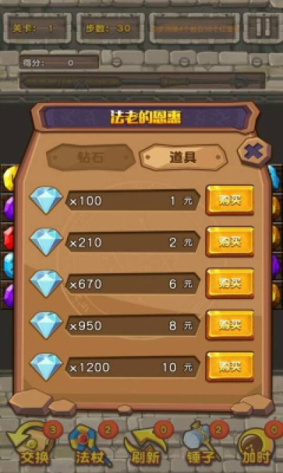 法老传奇(Pharaoh: Diamond legend)是一款非常有创意的消除游戏,互换的闪闪发光的钻石和其他珠宝匹配3和更多的珠宝来完成消除。