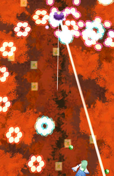 东方该系列游戏都以高难度著称,而该作品玩起来也是非常难,眼花缭乱的弹幕,让你防不胜防。
